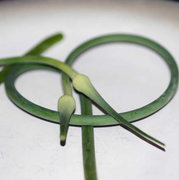Paisajes de ajo eran 5 por un dólar en el mercado ayer, así que agarró $3 vale la pena y lo convirtió en pesto que utilizo para asar una gallina cornish rock mañana por la noche. También es excelente como un dip, o en casi cualquier otra cosa que puedas imaginar.