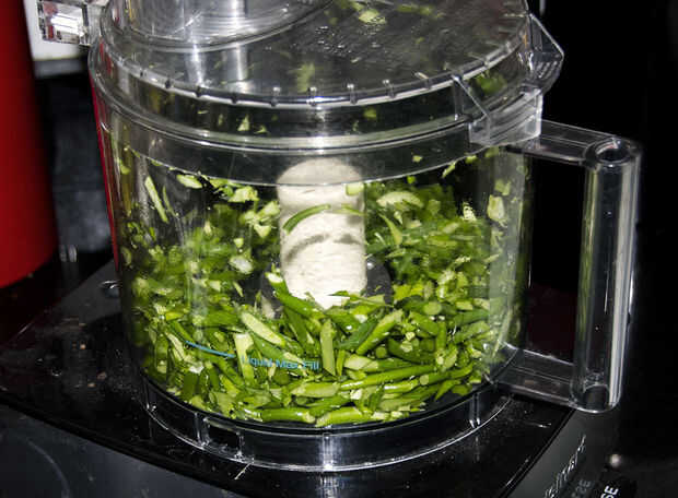 Añadir los escapos a un procesador de alimentos y pulso de 6 a 8 veces para romper los escapos un poco.