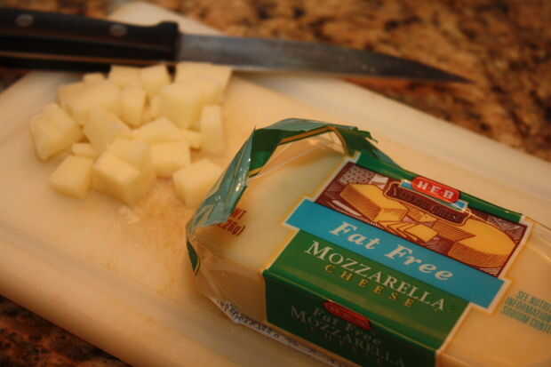 Revuelva hasta que se mezcle bien y agregue algunos cubos de Mozzarella. Para esto, me ha gustado el queso bloque por su calidad de fusión.