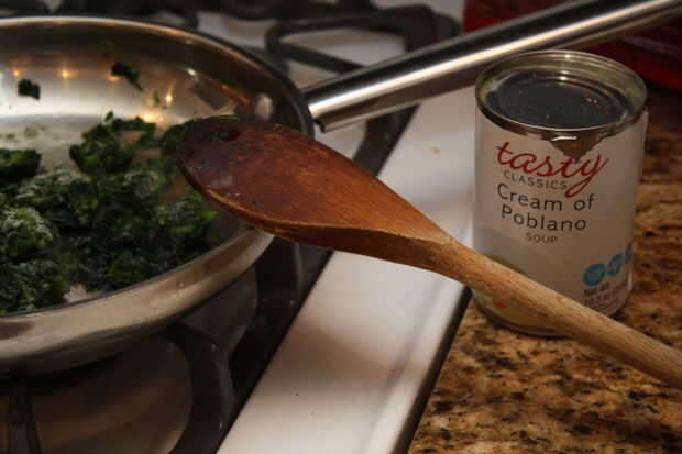 Una vez se descongele, añadir que media lata de sopa condensada. He utilizado crema de Poblano.