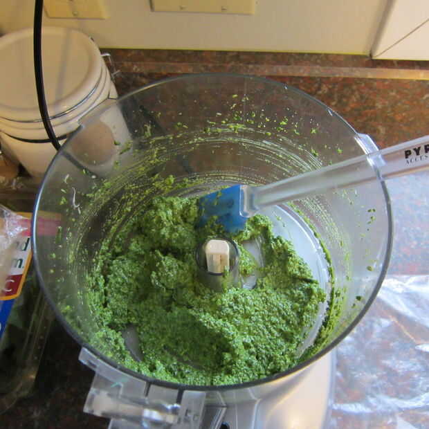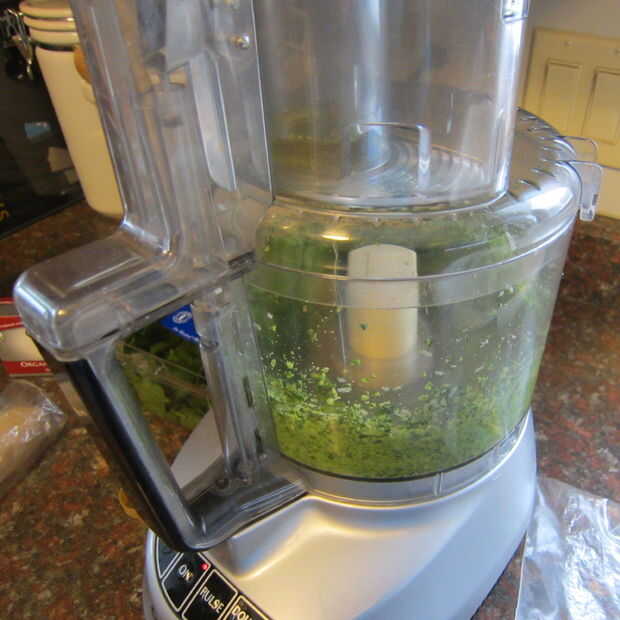 Ayer hice esta sabrosa y fácil de hacer pesto de espinacas y rúcula. Añade nueces tostadas y había agregado más adelante, el queso parmesano en la placa. Mi marido y yo no como la misma cantidad de queso en nuestro pesto, por lo que he añadido más ta