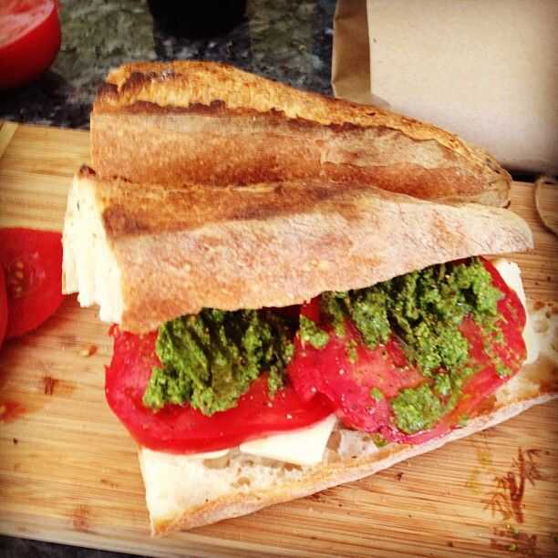este pesto es lo que puse en mis verduras al vapor. El uso de albahaca, de la tienda o su jardín de hierbas, es un increíble complemento para casi cualquier verdura.La receta es una variación de una receta en el Recetario de dieta South Beach (tomat