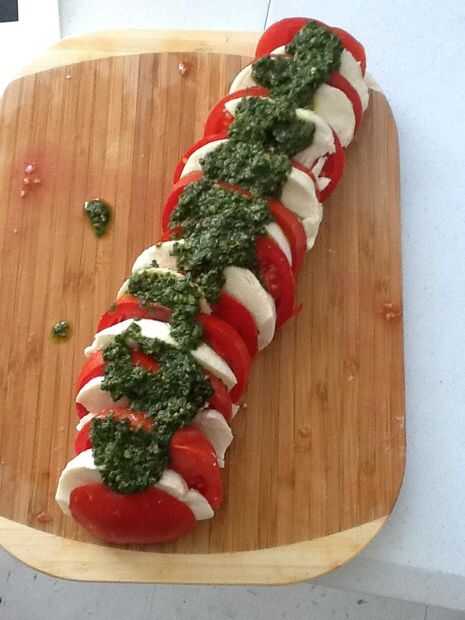 una nueva toma en el Pesto clásico, acompañada de una Ensalada Caprese y una sopa opcional desde la izquierda overs.Ingredientes para el Pesto:Aceite de olivaEspinaca picada congeladaEspárrago congeladoSemillas de girasol planasAlmendras de llanoPimi
