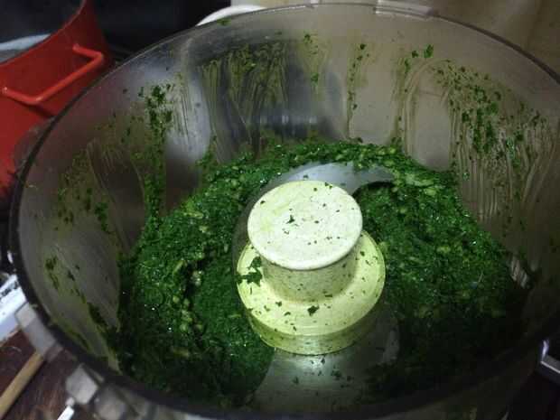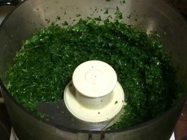 Poner la mitad del perejil en la picadora. Añadir un poco de aceite de oliva. Dejar que el procesador de alimentos funcione hasta el perejil en pagar una multa muy picado.
