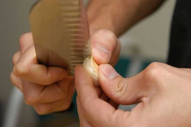 * PUNTA! Para soltar fácilmente los dientes de sus hojas de papel fino, colocar a esos bebés en su bloque y darles cada una ligera coacción. Será suficiente un whack swift por pedazo con una jarra de fondo plano u otro dispositivo. Ahora simplemente cortar la base nubby seco y quite la piel de él. Easy peasy! Ver las fotos.