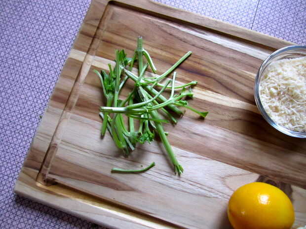 Tirar todas las hojas de sus tallos de albahaca y aproximadamente, picar el ajo.