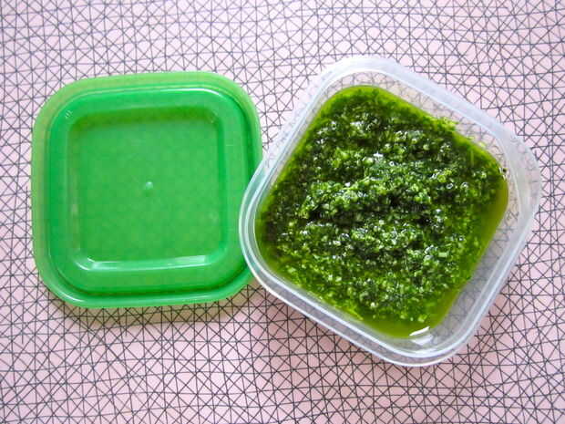 Esta receta es de una taza y 1/2 taza es suficiente para cubrir un gran bote de pasta - por lo que tendrás una buena cantidad de sobra. Se congela muy bien - puede congelar en un terrón o congelar en una bandeja de cubos de hielo.