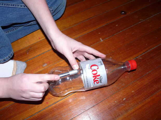 materiales: whisting fuegos artificiales pete, botella, encendedorProcedimiento:1. tomar la botella.2. Ponga al pete silba ligeramente en la parte superior de la botella.3. encender el pabilo de la pete silbidos y cosas dentro de la botella.4. ver el