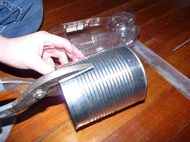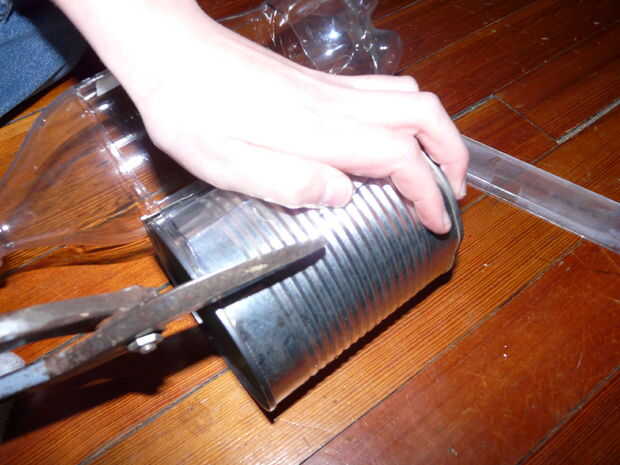 2. hacer el primer corte. Hacerlo al lado de la costura de la lata.