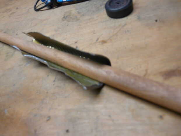 Ahora tenemos que doblar el metal para que encaje alrededor del gancho. Doblar el metal en forma de 'C' que se ajuste perfectamente alrededor del gancho. Estoy seguro que todos ustedes tienen herramientas para hacer este trabajo, pero no lo hice, así que había doblado alrededor de un pasador.