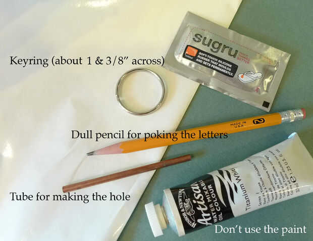 Solía metal estampado Letras y números para las etiquetas pequeñas de la impresión en el Sugru los nombres y números. Pensé frotando la pintura en las hendiduras que mostraría la información bien. La pintura volvió el tipo Sugru de gris aunque rellenar las hendiduras muy bien, prefiero el lápiz meter método que describo aquí. Os muestro el tubo de pintura en caso de que usted está pensando como si fuera.