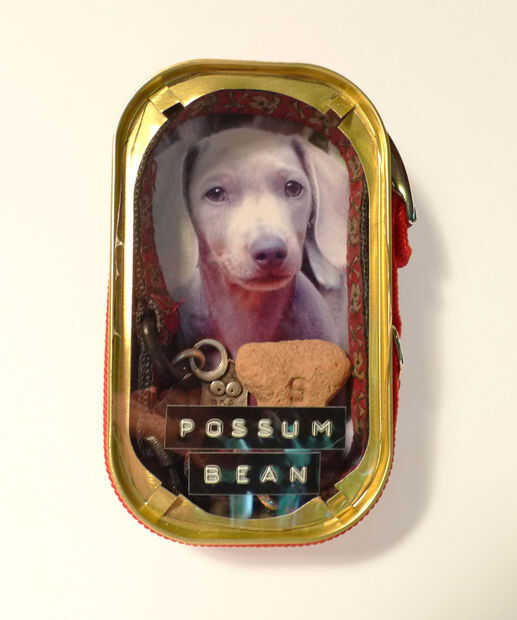 Le pongo collar y etiqueta Possum haba de cuando era small(er) y la mitad de una galleta, luego pongo otro collar alrededor del lado, se ve más acabado de esa manera.
