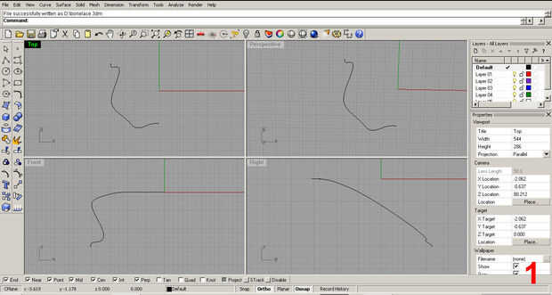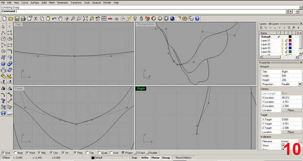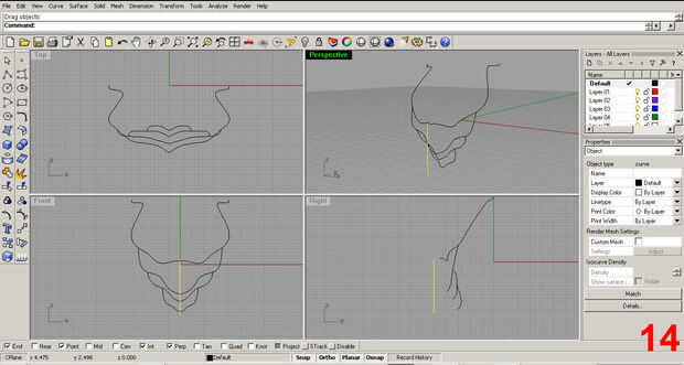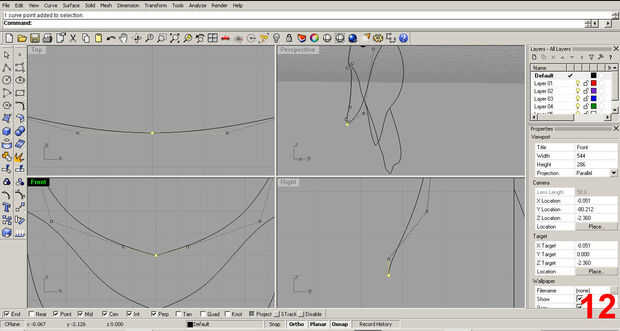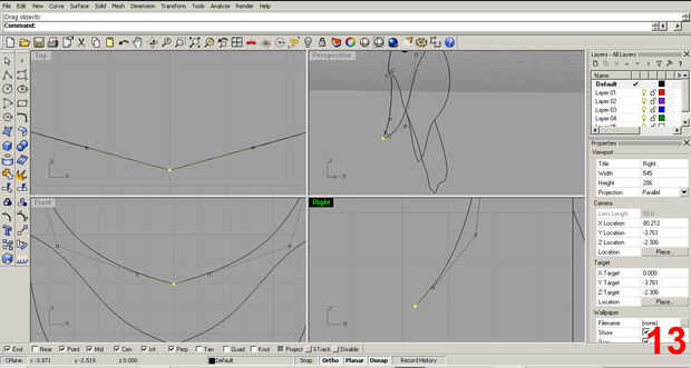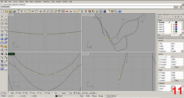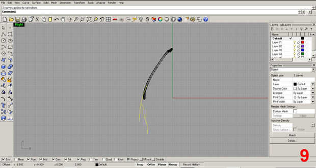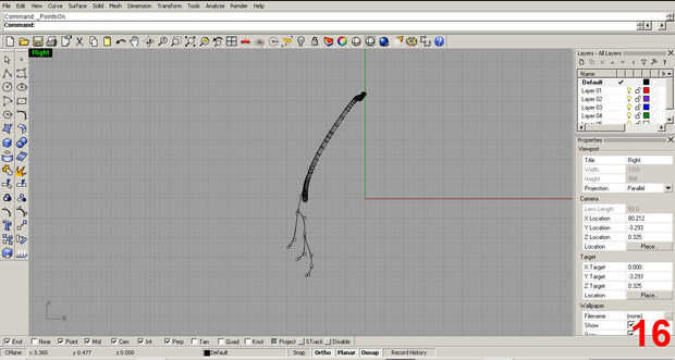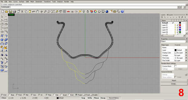 Había entubada de la pieza superior una vez satisfecho y me creó tres juegos más de curvas que se forman "las costillas". Estas curvas fueron creadas de la misma forma, ajuste, consideró apropiado utilizar juntos todos los puntos de visión. Yo quería tener una sensación orgánica a las piezas una vez hilo, así que hice las curvas multidimensional. Tenga en cuenta que ahora he rotado las piezas para que se alinee correctamente con los puntos de visión. La vista delantera ahora se muestra la parte frontal del modelo, el lado al lado, etc. imágenes 8, 9, 10, 11, 12, 13