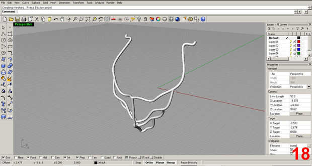 En imágenes 15, 16, 17 , he creado una última curva en el centro que se forma la "columna vertebral". Entonces canaliza todas las curvas. Usé un diámetro de 3/8" 18 imagen muestra todas las curvas hilo en modo" prestados".