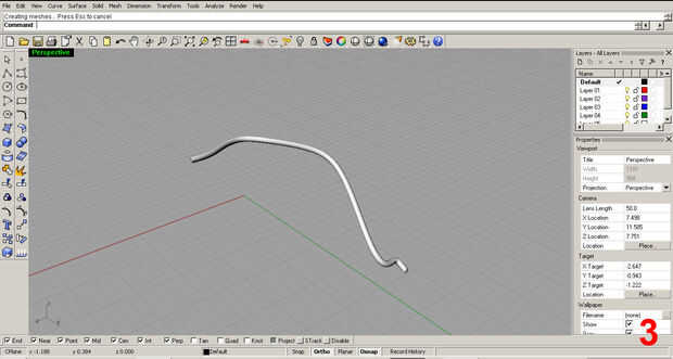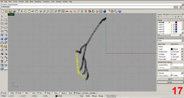 Para visualizar el formulario en 3D, he utilizado el comando "pipa" y establecer mi diámetro 3/8 ". Esto crea un "polisuperficies". Nota: luego borré las polisuperficies este comando creado, como sólo estuve probando. Imagen 3