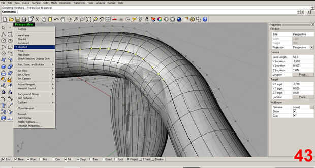 A continuación editar la región de la banda que descansa sobre la columna central. Imágenes 43, 44. Tenga en cuenta que en la imagen 43, cambié la vista al fantasma para obtener una mejor sensación para la intersección de las dos piezas.