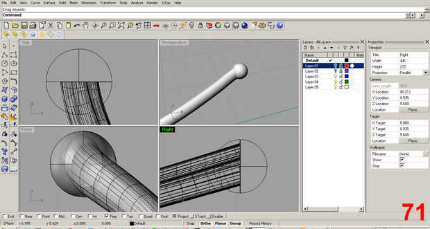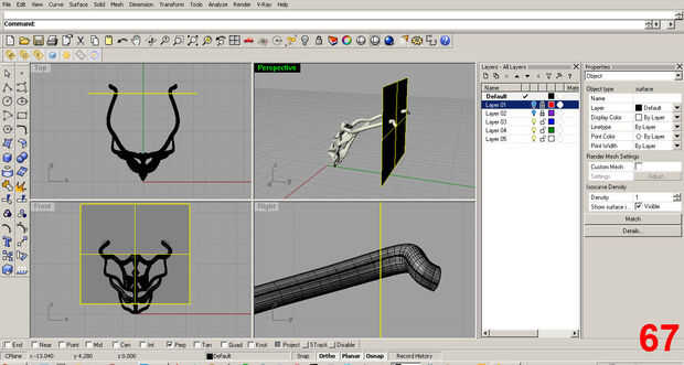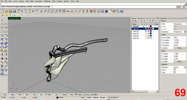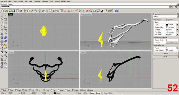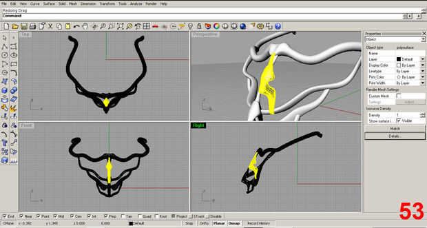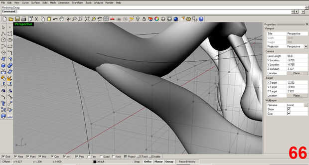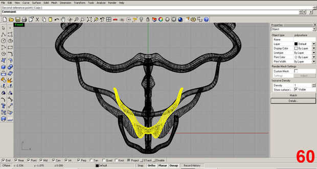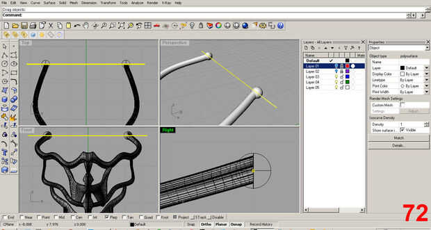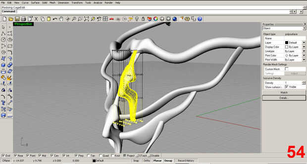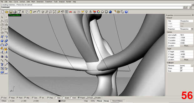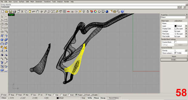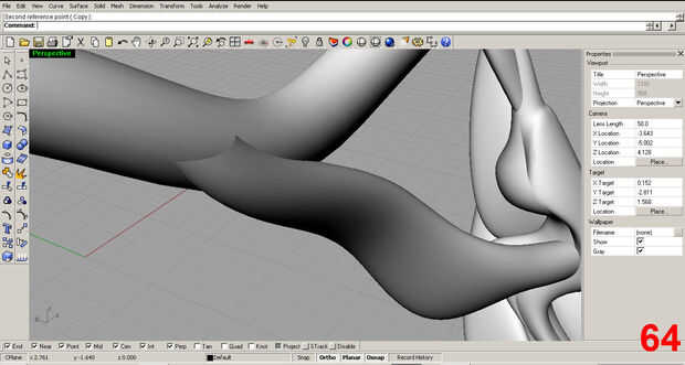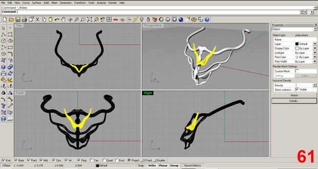 Satisfecho con la forma inicial, posición de la pieza y utilizar el comando "trim" para eliminar la parte sobrante de la costilla que sobresale más allá del cuello. Imágenes 61, 62