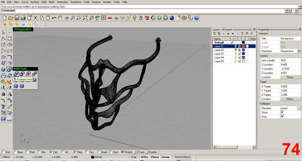 Usando "Booleana Unión" ir pieza por pieza, fusión de un componente a otro hasta que tenga una pieza singular. Una vez que estas operaciones son completas no puedo editar los pedazos individuales. Imagen 74, 75, 76
