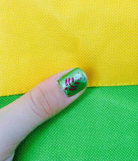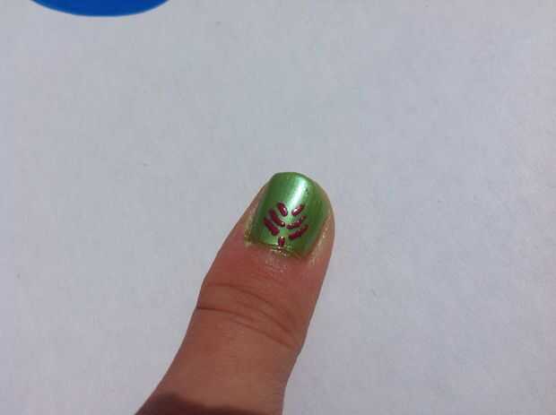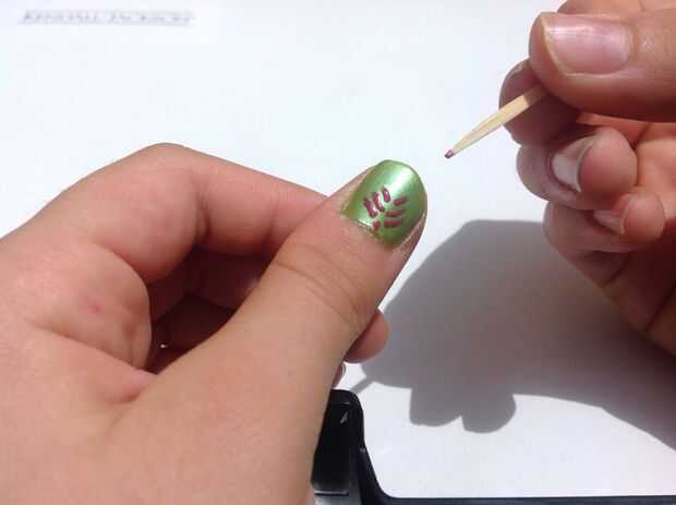Utilice un hisopo de algodón para hacer las pequeñas flores en la parte superior con un esmalte de color diferente