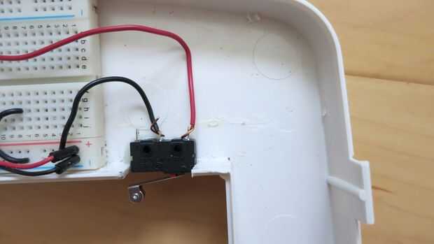 Corte la ubicación del segundo interruptor de rodillo en el centro del marco interior. Pegamento de epoxi el segundo interruptor.