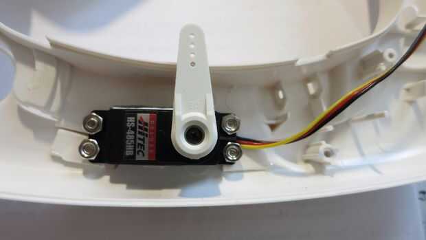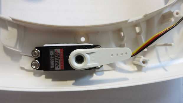 Atornille el servo en su lugar y coloque el brazo del servo "super fuerza". El brazo del servo debe colocarse de modo que es en el grado 0 en la posición cerrada y en posición de 90 grados cuando retrae (posición abierta).