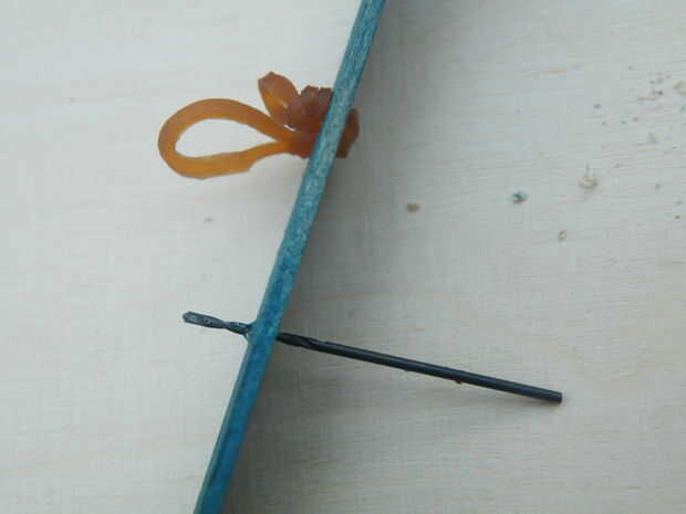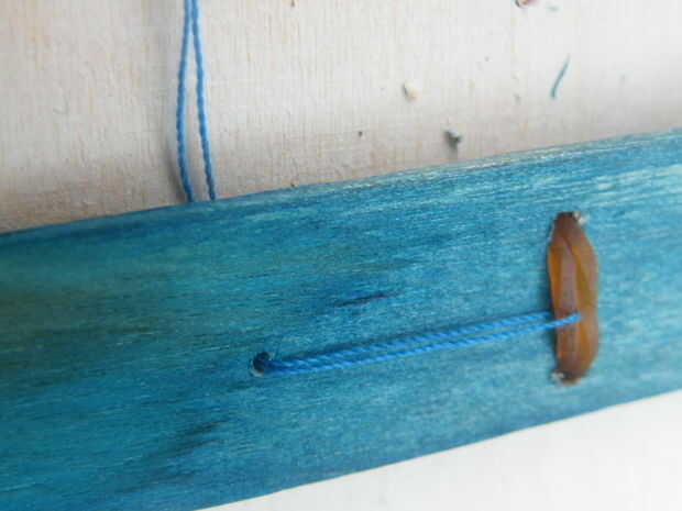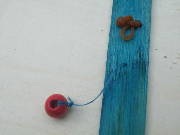 Alrededor de la parte posterior del palito, ate un cordón en el extremo del hilo.
