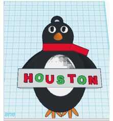 una bufanda. Originalmente elegimos hacer una corona con un caballo dentro y un pequeño arco en la parte superior pero no pudimos averiguar de cómo hacer un caballo. La razón por la que eligió hacer un pingüino es porque hemos iniciado fastidiando y decidió hacer un pingüino había añadido el cartelito de Houston. Pingüinos y una bufanda también tienen que ver con el invierno y el cartelito de Houston también representa Houston Middle.For nuestro diseño, estamos haciendo un pingüino con un cartel de Houston