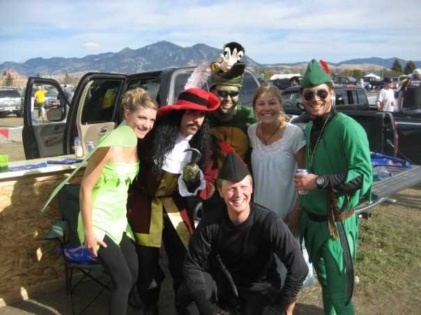 Para Halloween 2009 mi novia y yo fuimos como Peter Pan y Tinker Bell. Hicimos nuestros trajes sin patrones. No sé qué material que utilizamos para vestido y zapatos pero era la clase derecha verde, elástica y miró de frondoso... Las alas fueron hech