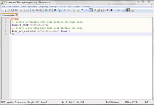 Antes de enviar cualquier archivo que tenemos que hacer un archivo, así que en este ejemplo tenemos que hacer un php de archivos que nos nombrará httppost.php usando Bloc de notas ++ , que puedes descargar desde aquí, (ver la imagen de arriba para el código y la explicación un poco). Después de crear el archivo php del servidor vas a realmente enviar ese archivo a los servidores que alojan su página web y aquí es donde FileZilla, para lograr que lo primero que tenemos que establecer una conexión entre su computadora y los servidores de host y luego con el botón derecho sobre el archivo que desea enviar, en este caso httppost.php y luego de la transferencia.