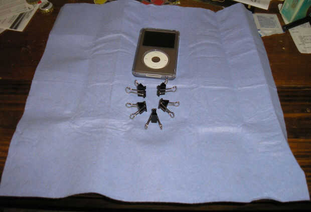 2) clips pequeño cuaderno cinco (o más grandes, si está envolviendo algo más grande que la electrónica de bolsillo)