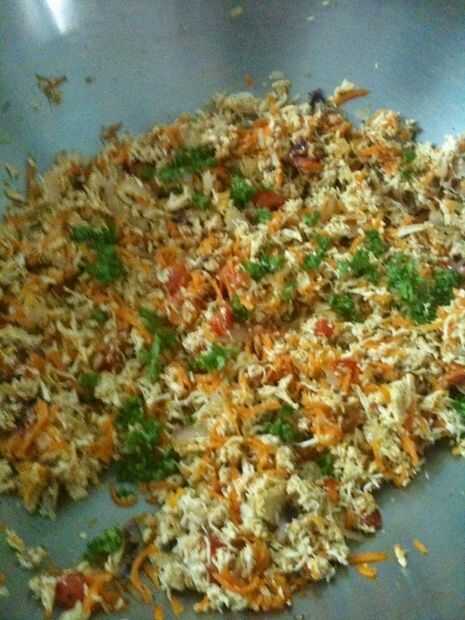 Una vez que curry es totalmente refrigerado en 1 o más huevos según la cantidad de su curry... esto es para ayudar a que el curry se unen al pan