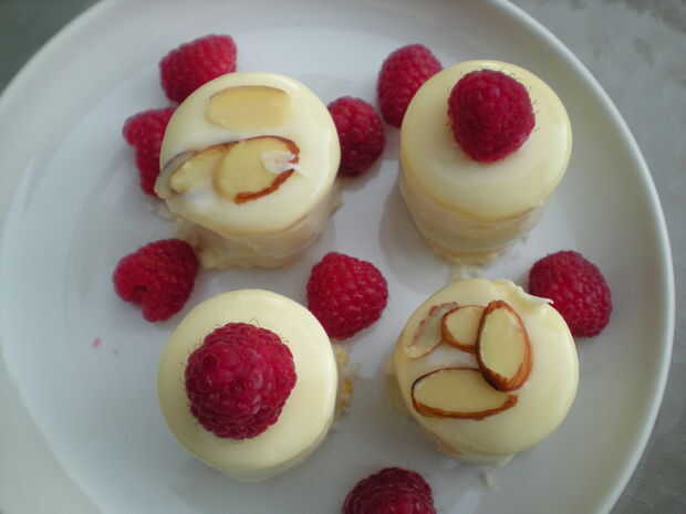 Estos paso se describe cómo hacer frambuesas almendra petit fours cubiertos con una ganache de chocolate blanco.