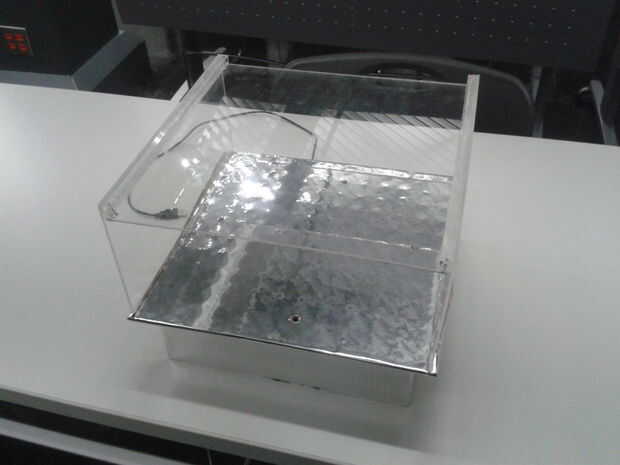 Interacción avec l'interface : L'interface doit être installée dans un endroit sombrío. À l'aide d ' une lampe de iphone, el vient illuminer les células photosensibles en glissant l'appareil sous le couvercle de plexiglass.
