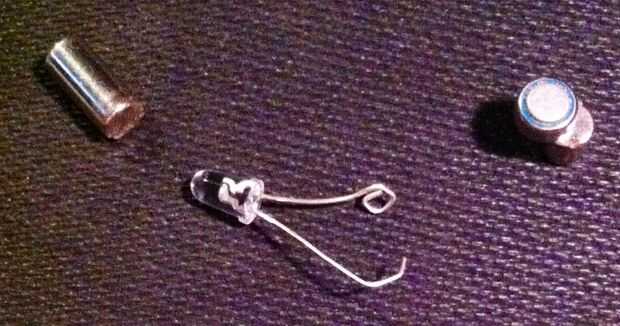 Ahora ponga el lazo de alambre rizado de LED entre el otro extremo del imán y apriete con la