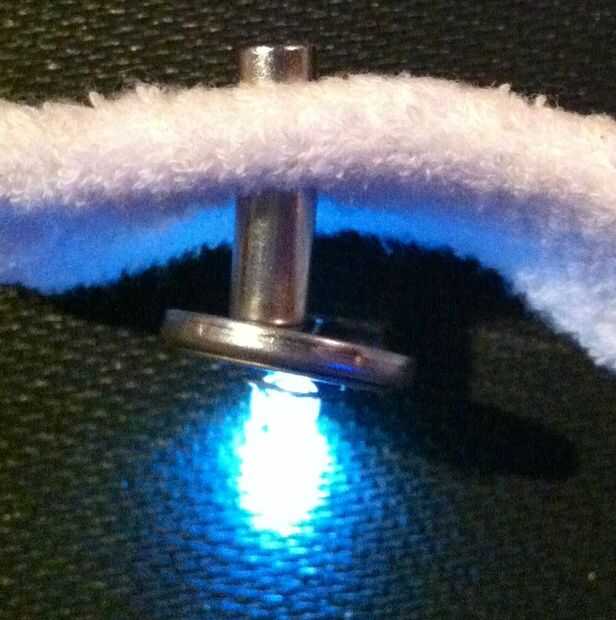 Tome una banda de sudor y utilice los dos imanes más un 3 voltios DL2032 celular como en la imagen...