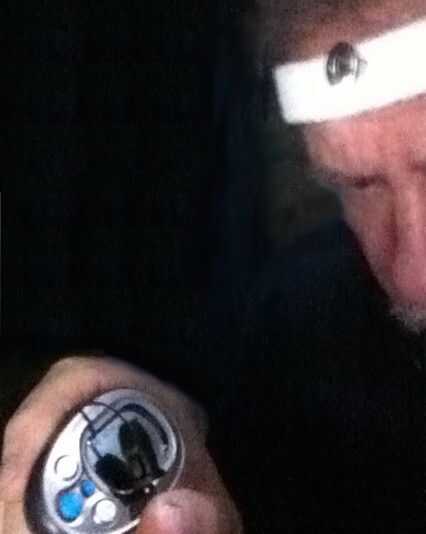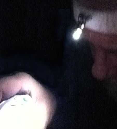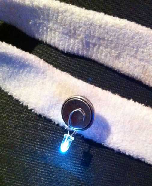 banda de cabeza en una habitación oscura iluminando otro equipo electrónico.