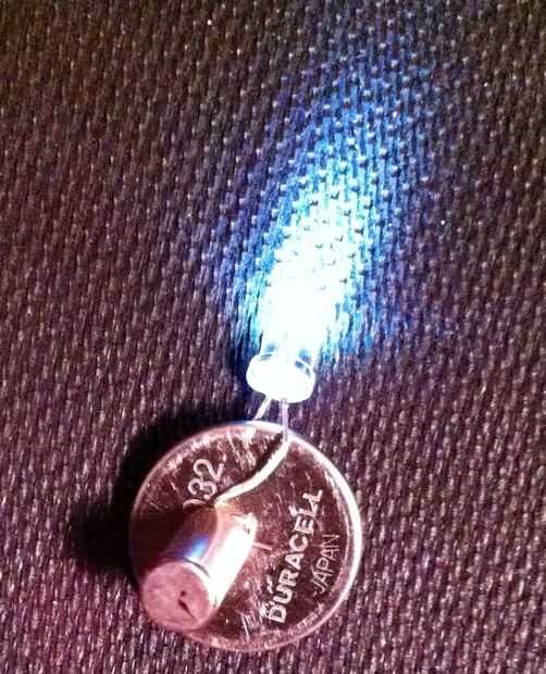 Usted tendrá que doblar los conductores del LED (fácil a mano) para pellizcar la batería y punto abajo...