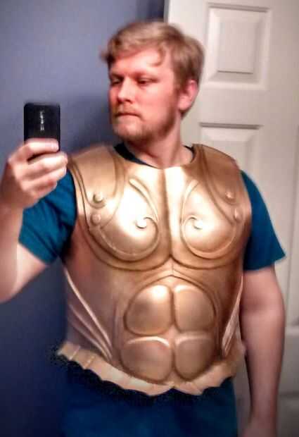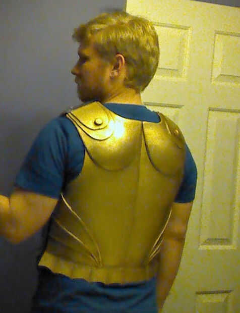 Luego procedí a añadir algunos atar con correa de velcro para unir la parte delantera y la espalda. Algunas personas prefieren las hebillas. Velcro es barato, y lo tenía listo para su uso. Sólo asegúrate de cuando utilizas velcro que utilizas bastante la armadura para que mantenga las cosas en su lugar, y que enfrentan el lado del gancho de su persona. Hace mucho más cómodo.