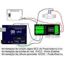 Como dito no último passo, na salida superior da cruzeta haverá um cano le levará ao sistema de irrigação.esse sistema irá regular una entrada e salida de agua, todavia esse sistema é compone con por mais coisas para funcione exatamente como o programado, olhe na foto 1, ali estará o você precisa fazer e os materiais necesarias, um diplomas é una Placa Relé 5v Para Arduino , como na foto 2, o próprio Arduíno, un fonte de energia com 5V e una parte será legislação pela atuação, como na foto 3, enquanto na foto 4, é possível ver onde esse regulador precisa estar.