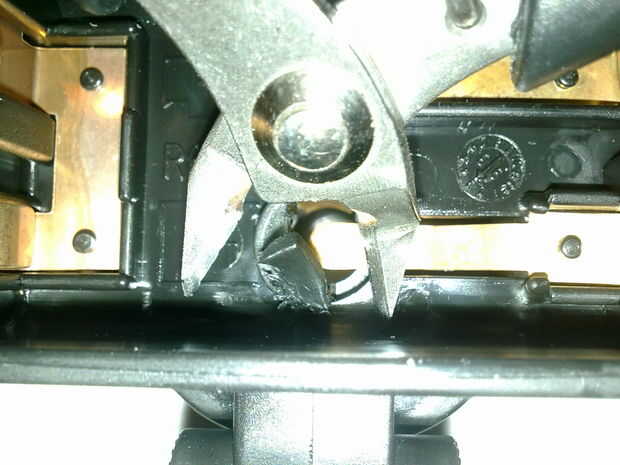 1) cortar la parte que sobresale de la carcasa de la batería.