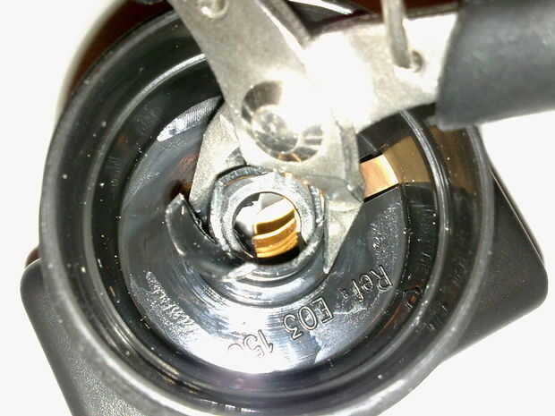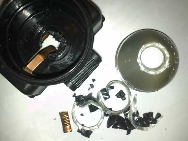 2) corte el portalámparas y el contacto del metal hasta la base.