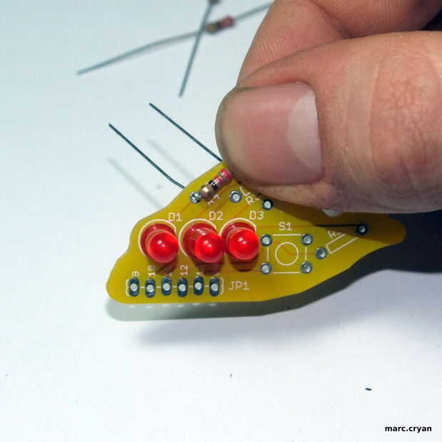los espectáculos me armar el circuito en la página 43 de empezar con Arduino, por Massimo Banzi.Este ejemplo es un muy buen punto de partida al utilizar el sistema Arduino.  Es la base de mi proyecto Pez BlinkyAquí es cómo funciona:Código se carga en