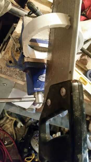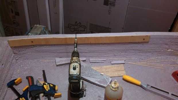 para anclar los rieles en la espuma, me taladre agujeros en la espuma con el sostenedor del pedacito de mi taladro, ir al menos una pulgada en pero no a través del casco.