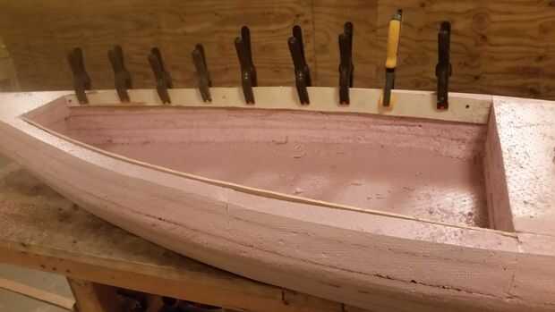 Coloque algunas varas para mezclar pintura libre en el exterior del casco donde aterrizarán las abrazaderas para evitar marcar la espuma.