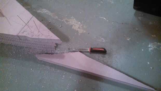 rastrear la pierna de la V en el extremo delantero de la costilla inferior, corte la parte de la costilla que fue overlaped, el arco V debe encajar muy bien en el "pico" en la costilla. (si se corta demasiado, recortar parte de la espuma removida y deslice en la brecha para mantener bastante apretado.