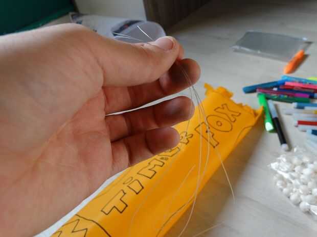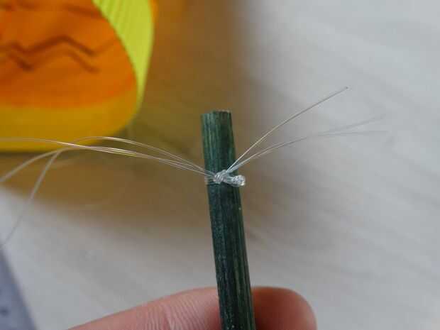 cortar 4 trozos de 30 cm un palillo en el interior de los peces su boca. Después de todo ello atarla en el palo.