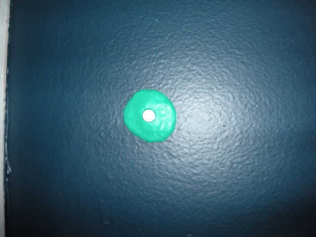 Tomar el imán y empuje en el Sugru aproximadamente en el centro. Desea que el borde a ser casi al ras con el Sugru, tener que sobresalen de la cantidad menor. Que desea como esta para que toda la superficie del imán puede comprender sobre lo que usted necesita colgar.