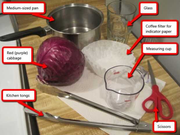 Estas instrucciones explican el proceso simple de cómo hacer una solución de indicador de las hojas de una col roja (también llamado repollo morado) y cómo hacer papel indicador sumergiendo un filtro de café en la solución de indicador. [Nota: una solución en este sentido significa simplemente que una sustancia disuelta en agua. En este caso, los productos químicos con propiedades del indicador en las hojas de col se disuelven en agua hirvienda.] Los trabajos de papel indicador en la misma forma que la propia solución del indicador: el papel cambia de color cuando entra en contacto con una sustancia ácida o básica. Algunos pasos opcionales al final de las instrucciones (pasos 9-14) explican como utilizar algunos artículos del hogar para probar la solución indicadora y el papel para ver cómo cambian de color.
