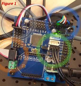 -En el círculo verde ha mostrado donde se conecta el primer servo. El servo siguiente está conectado a través de la primera de ellas.