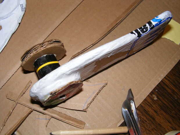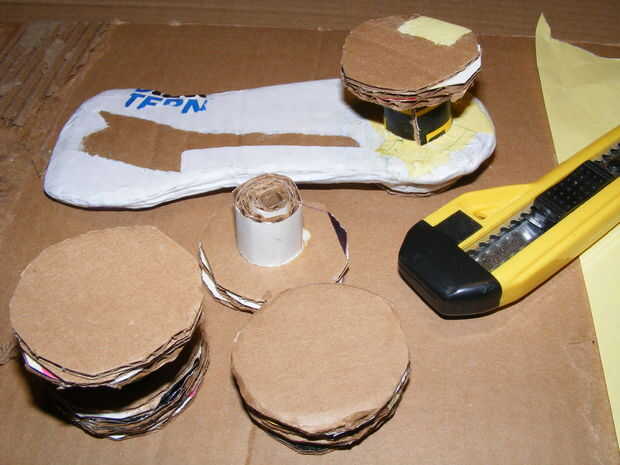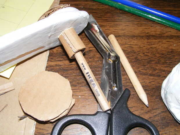 He hecho de cartón. He utilizado lápices cortos como los pernos del eje. Supongo que esto califica como una especie de hack IKEA ya que uso sus lápices gratuito. Realmente, no sé por qué así que muchos terminan en mi bolsillos cada vez que dejo ahi. Pensé acerca del uso de su papel cinta métrica como una correa de transmisión, pero probablemente habría tenido que laminar la cinta con una capa de goma para el agarre y desgaste.
